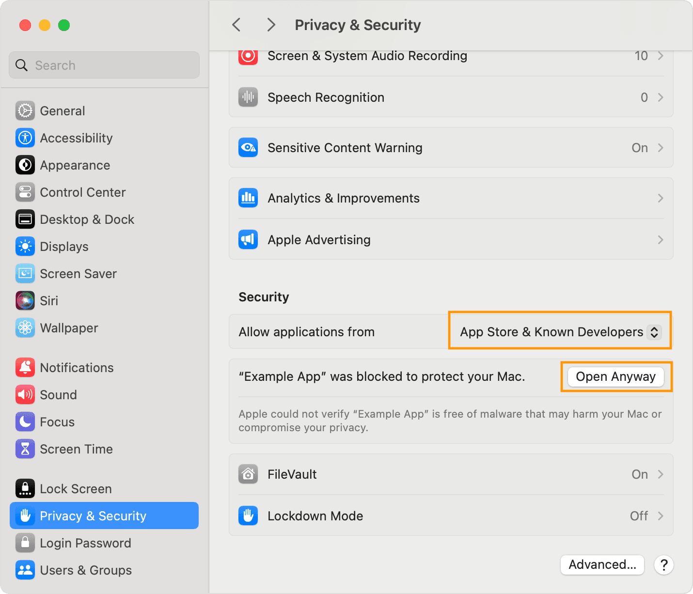 The app is now saved as an exception to your security settings, and you can open it in the future by double-clicking it, just as you can any authorized app.