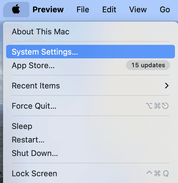 In the top left corner of your Mac, choose 「Apple menu」 > 「System Settings」